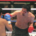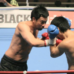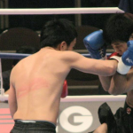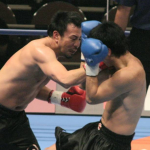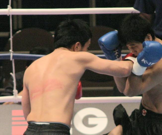 パンチを当てるタケル(左)