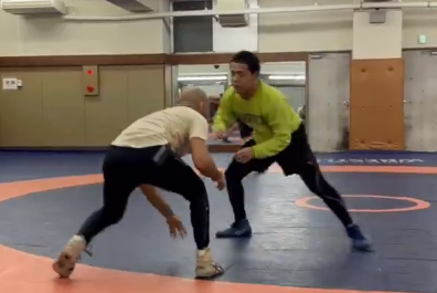永田裕生(右)がアーチュレッタ(左)とレスリングスパー(@nagata769)