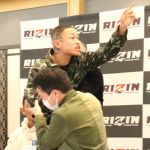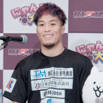 今年6月の皇治戦前の記者会見で芦澤は皇治に飛び蹴りを見せた(今年4月)
