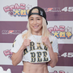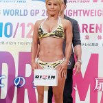赤ビキニで計量に臨む山本美憂(17年7月)