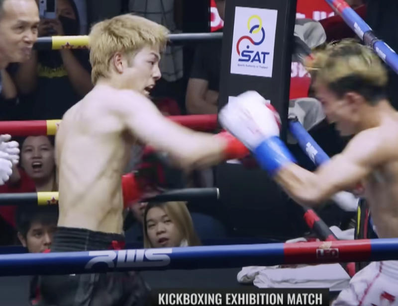 三浦(左)は7月にはタイでキックボクシングマッチも(RWSYouTubeより)