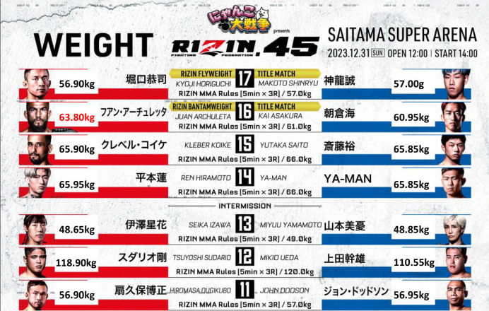『RIZIN.45』計量結果