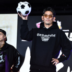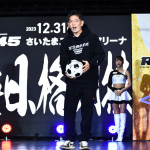 観客へ向けて蹴ったボールは綺麗な放物線を描いた