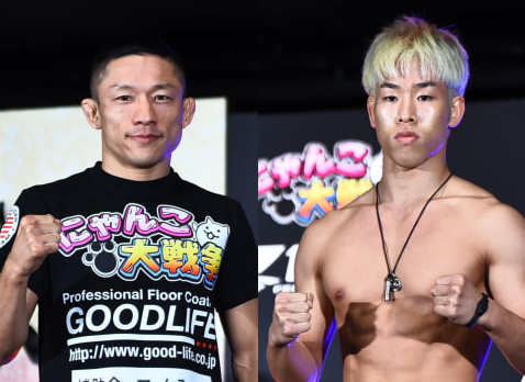 RIZIN初代フライ級王座決定戦、堀口恭司(左)と神龍誠(右)が計量パス