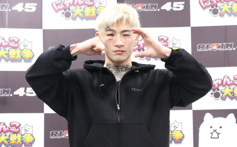 勝利に喜ぶ平本は、このポーズ