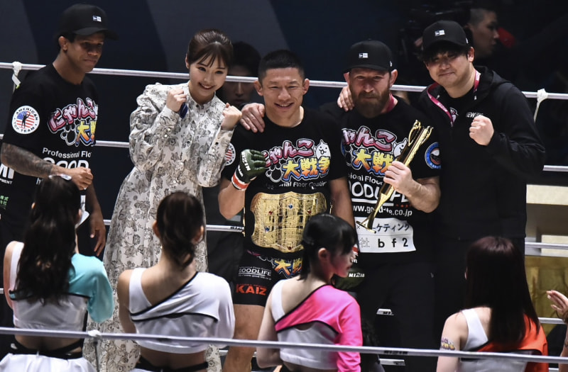 仲間たちと写真に収まった堀口
