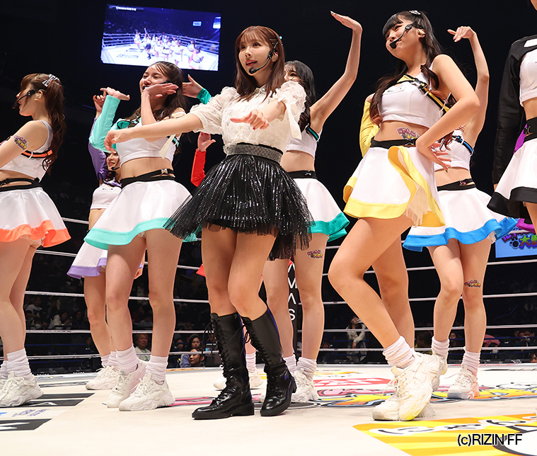 三上悠亜が登場し、RIZINガールと歌って踊るパフォーマンスを披露した。