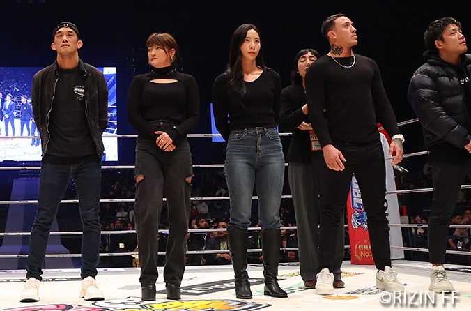 RIZINリングに登場したRENA(左から2番目)シン・ユリ(左から3番目)