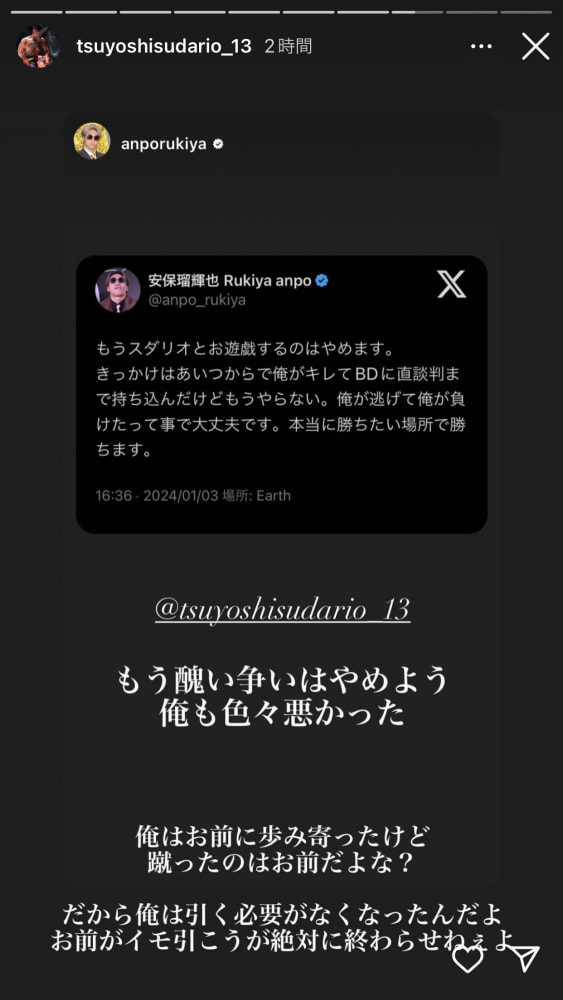 白旗の安保に、スダリオはけじめをつけると宣言 @/tsuyoshisudario_13