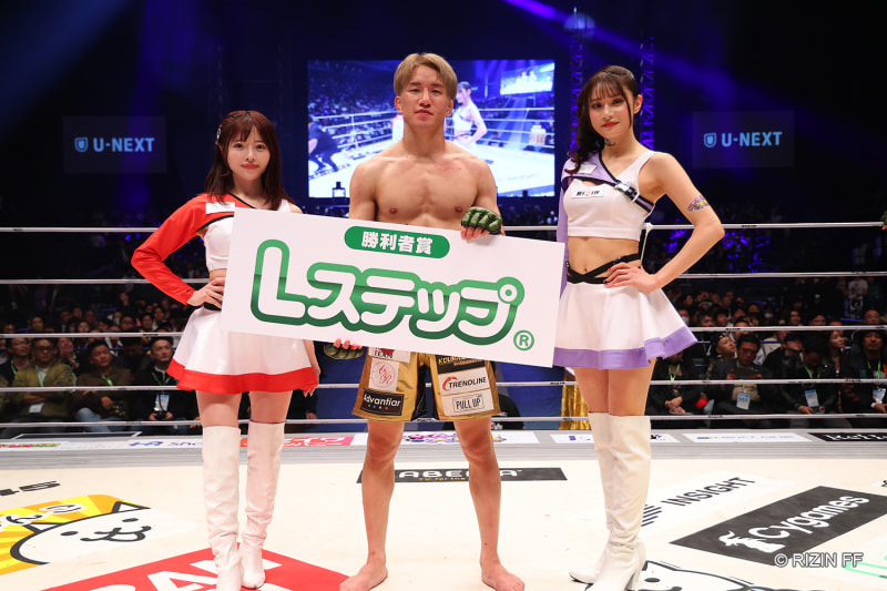 朝倉海の王座奪還の試合のラウンドガールを務めたKOU(右)