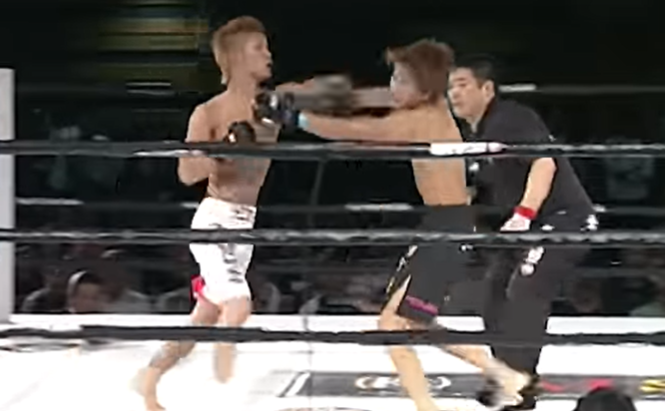 RYOTA(左)は朝倉海(右)にパンチを入れていく(『朝倉未来YouTubeチャンネル』)