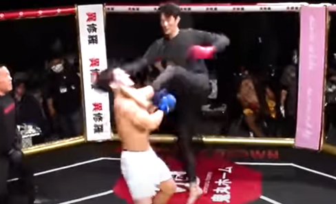江畑のハイキックが喧嘩自慢に顔面へ(『朝倉未来YouTubeチャンネル』)