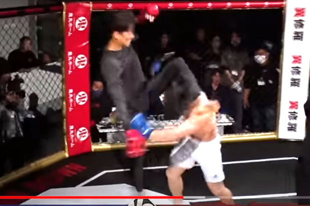 江畑のカカト落としが襲い掛かる(『朝倉未来YouTubeチャンネル』)