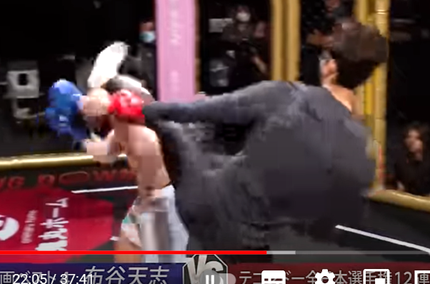 この江畑の左ハイキックがダメージを与えた(『朝倉未来YouTubeチャンネル』)