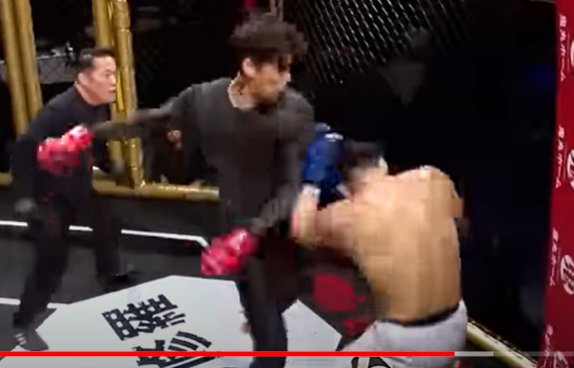 最後はパンチをまとめて江畑がKO勝利(『朝倉未来YouTubeチャンネル』)