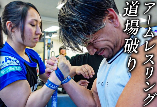魔裟斗は左右の腕で勝負を挑むも完敗だった(『魔裟斗チャンネル』サムネイルより)