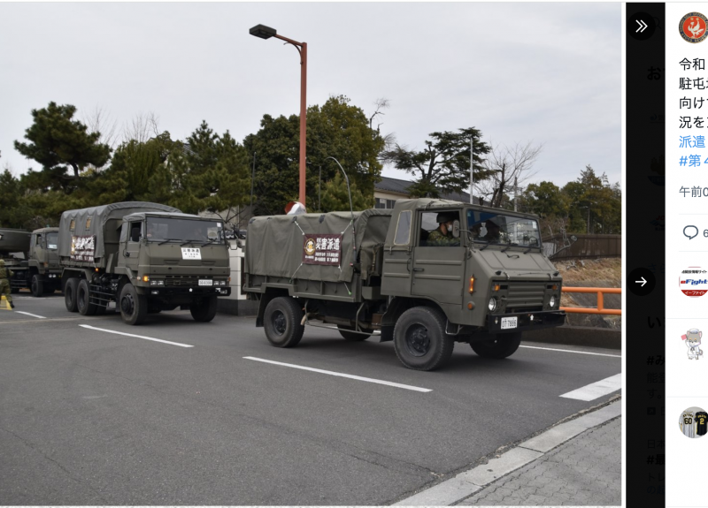 走行する緊急車両(防衛省Twitter)