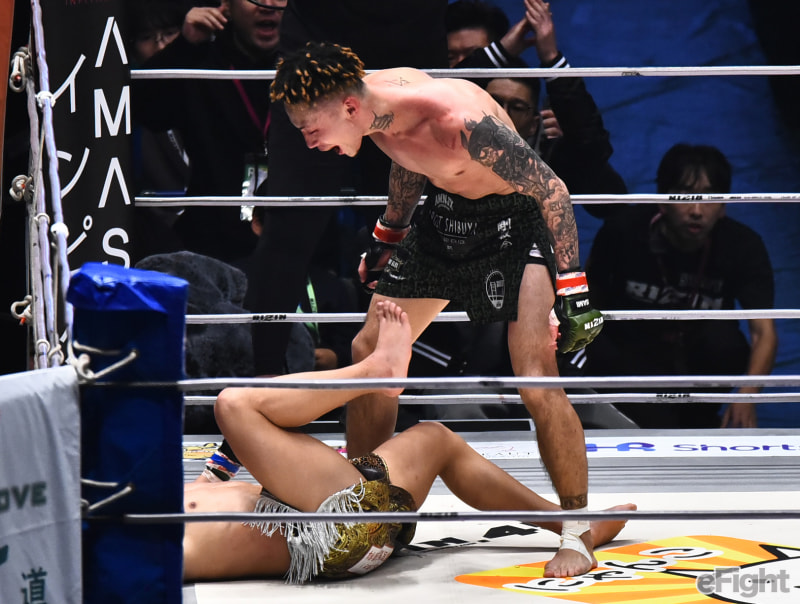 篠塚辰樹の左ストレート、これで冨澤からダウンを奪う