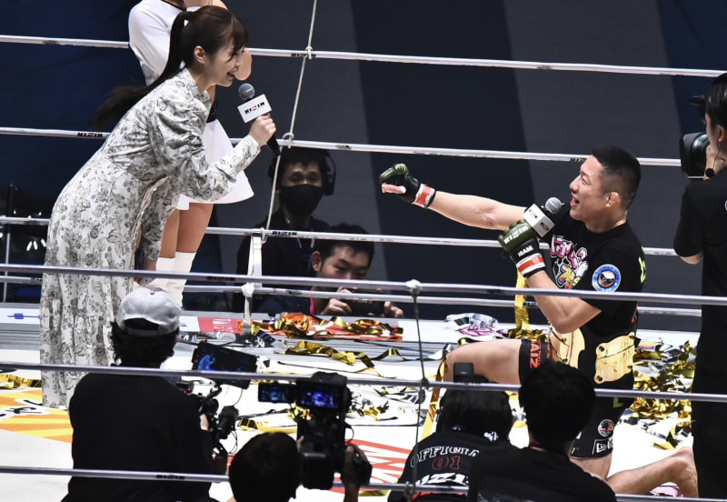 勝った堀口(右)は川村那月(左)に公開プロポーズ