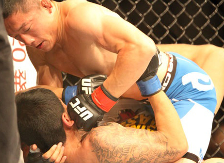 14年、UFCジャパンでこのパウンドをまとめKO勝ちした堀口(対ジョン・デロス・レイエス戦)