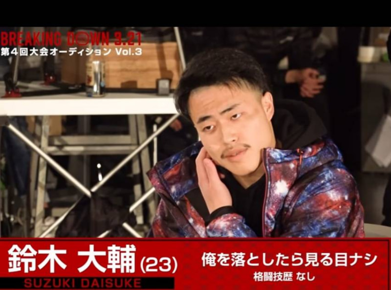 22年3月、ふてぶてしい態度でブレイキングダウンのオーディションに初登場した10人ニキ、武器を持った10人と1人で戦い勝利したと豪語していた(朝倉未来YouTubeより)