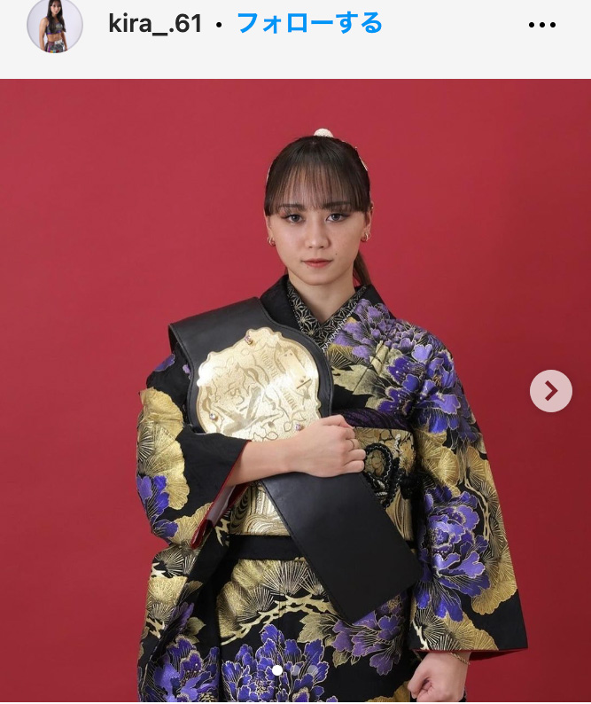 Krush王者の松谷が振袖姿を公開した(@kira_.61より)