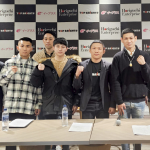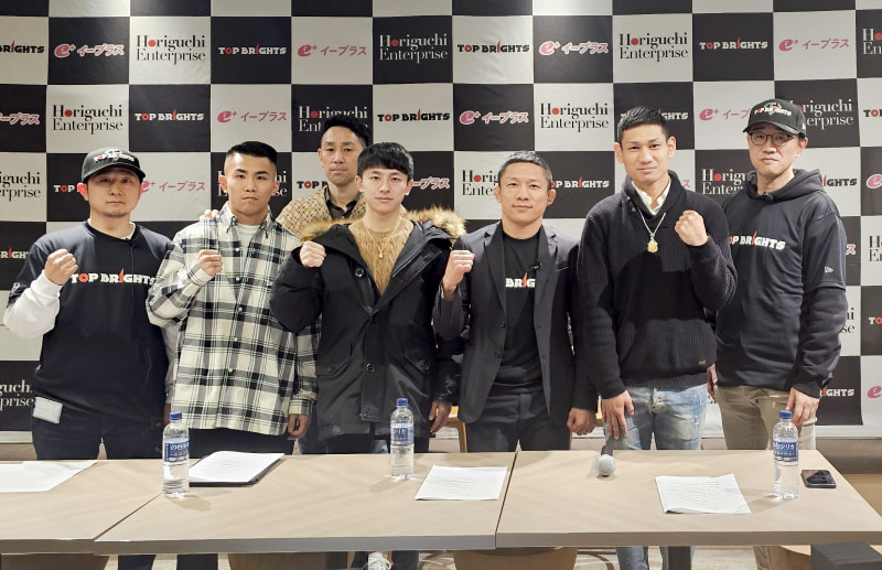 会見に出席した堀口恭司(右から3番目)や選手たち