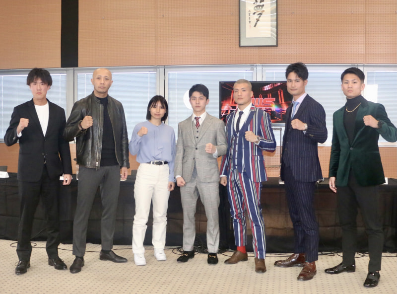 左から馬渡、マイク・ジョー、伊藤、吉成、永澤、重森、レンタ 日本ムエタイ界のビッグネームが揃う
