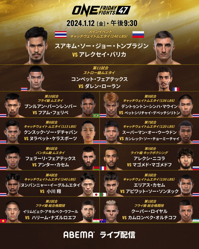 小川は第4試合に登場!©️ONE
