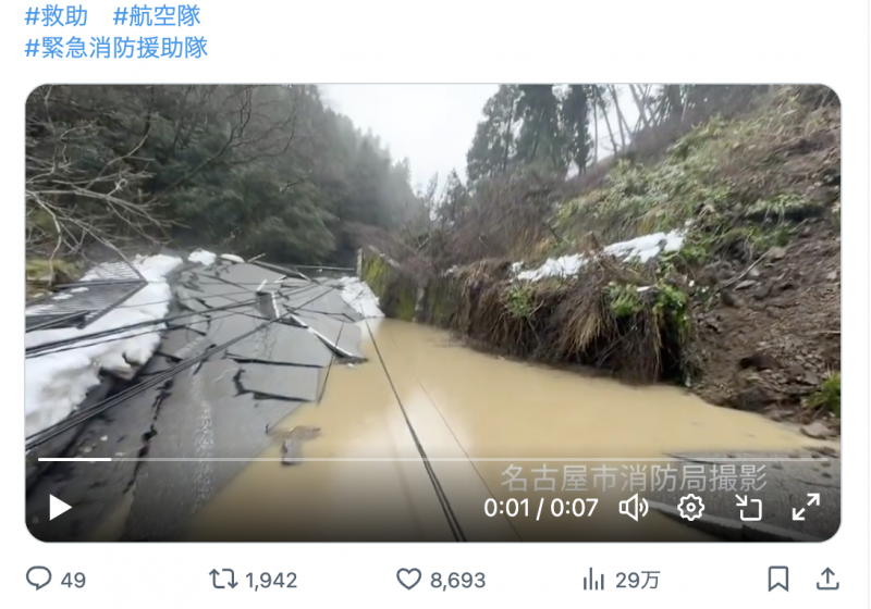 破壊された道路(防衛省Twitter)