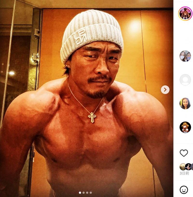 23年10月、筋トレ後の盛り上がる“巨大メロン肩”!(@akiyamachooより)