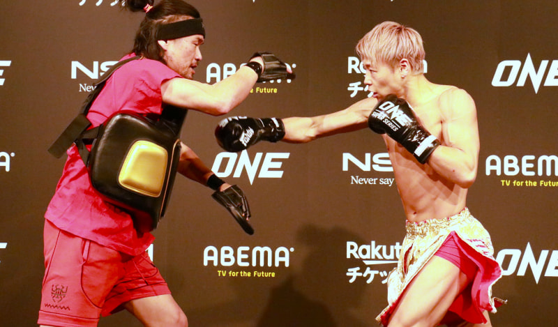 会見後のミット打ちで鋭いパンチを見せた武尊