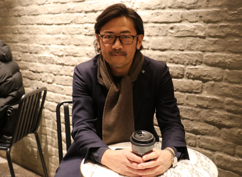 ONE会見会場近くのカフェで、“ONEとの交流”について語るカルロス菊田K-1プロデューサー