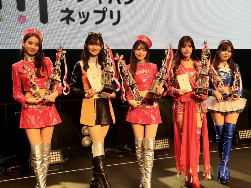 日本レースクイーン大賞2023に選ばれた(左から)黒木麗奈、仲美由紀、松田蘭、広瀬晏夕、水瀬琴音