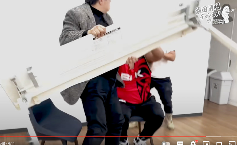 机を持ち上げる前田(前田日明YouTubeチャンネルより)