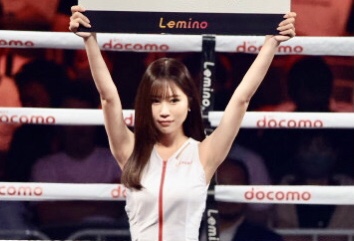 井上フルトン戦、井上タパレス戦でのラウンドガール姿の日南まみ