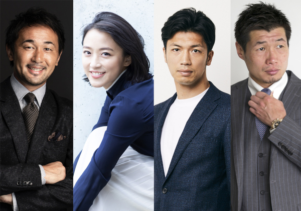 MCに竹内由恵(中央左)、解説に村田諒太(中央右)、長谷川穂積(右)、山中慎介(左)が出演
