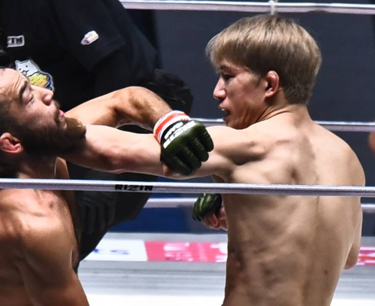 昨年大晦日、アーチュレッタにパンチを打ち込む朝倉海(右)