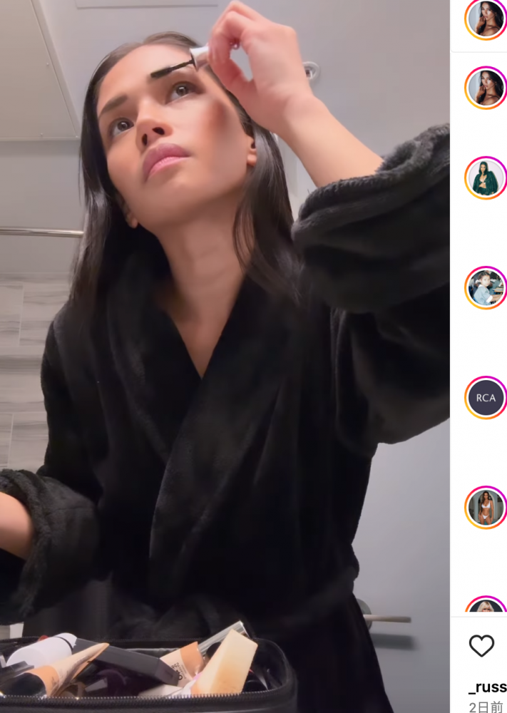 スッピン状態でメイクをするデラ・クルーズ@red_delacruzより