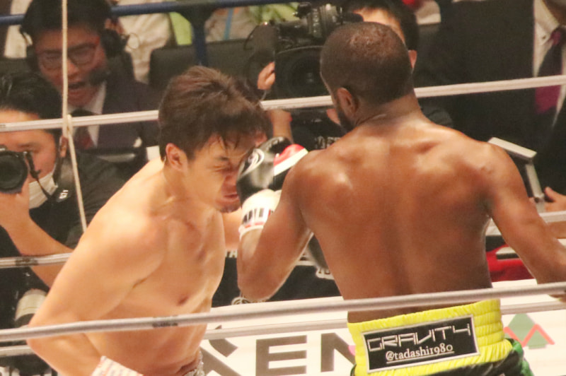 小比類巻が武尊がスーパーレックを倒す技として挙げた縦拳でのショートアッパー(※写真は、メイウェザーが朝倉未来にショートアッパーをヒットさせた場面)