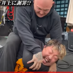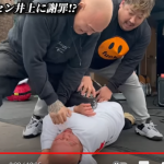 タックルを潰されたノッコンは、腕を巻き付ける絞め技で制裁を受ける(『ノッコン寺田』YouTubeチャンネル)