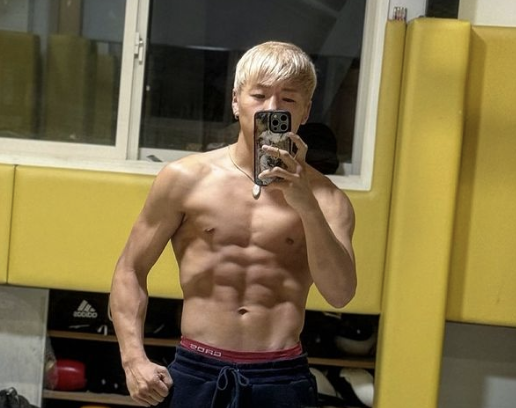 これまでより腹筋が割れ、腕の筋肉も浮き出ている (@takerusegawa)