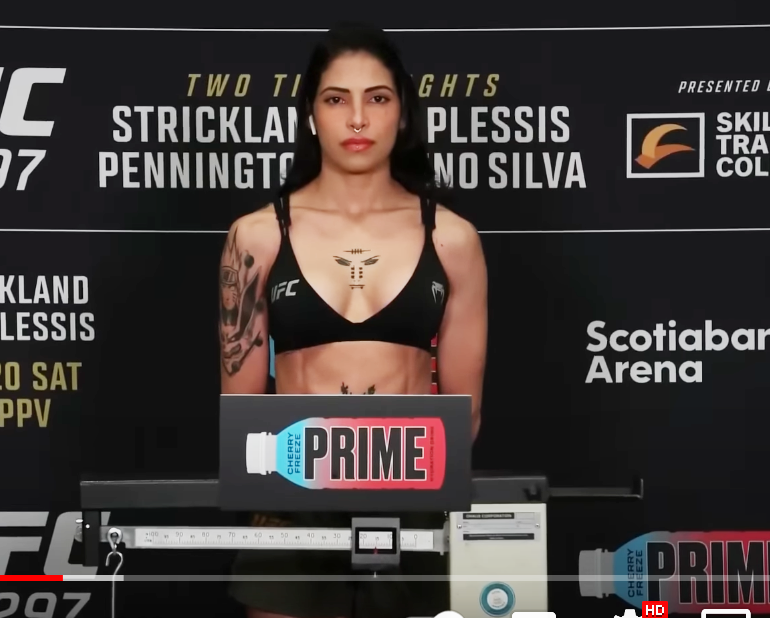 鍛えたボディで計量パスのヴィアナ(UFC公式YouTubeより)