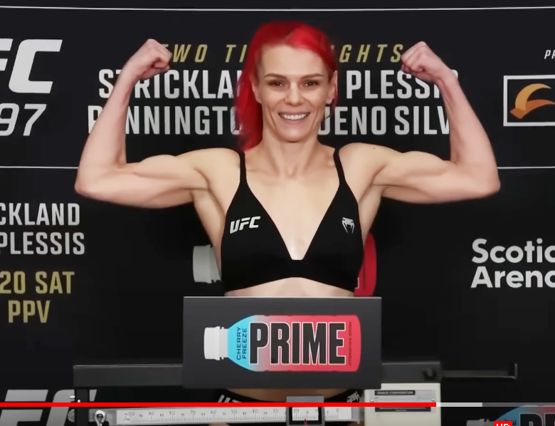 相手のロバートソンはマッスルポーズ(UFC公式YouTubeより)