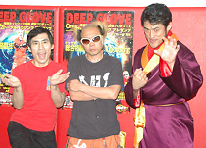 南部虎弾プロデュース大会の会見に出席した(左から)エスパー伊東、南部虎弾、アントキの猪木(07年7月)