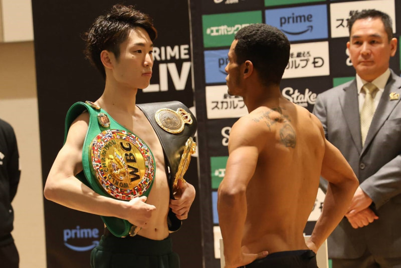 王者・寺地(左)と挑戦者カニサレスのフェイスオフ