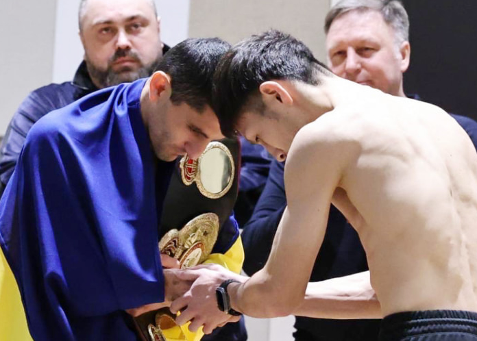 握手しバッティング!この後互いに頭を押さえた!(ボクシングモバイル)