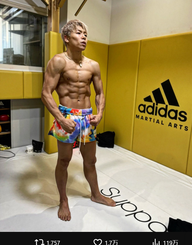 武尊が昨日23日に公開した究極ボディ(@takerusegawa)