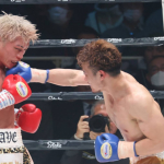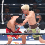 天心の試合を観る辰吉丈一郎(奥)と寿以輝