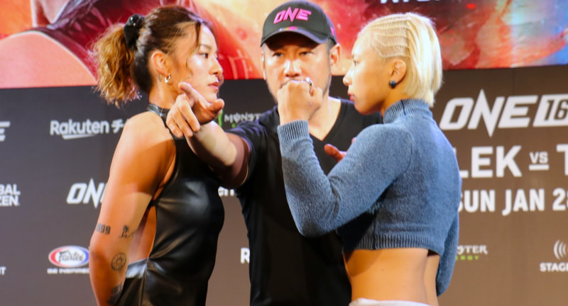 平田樹(左)と三浦彩佳(右)のフェイスオフ